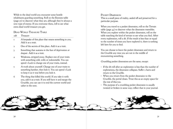 To play you'll deal out a grid of cards and move a token across them, encountering different parts of the Crucible each time and writing on the card the kind of thing that's there. When a run ends you shuffle up all those cards and start again, but now some of those cards are pre-set -- the Crucible will never become predictable, but it will become familiar.